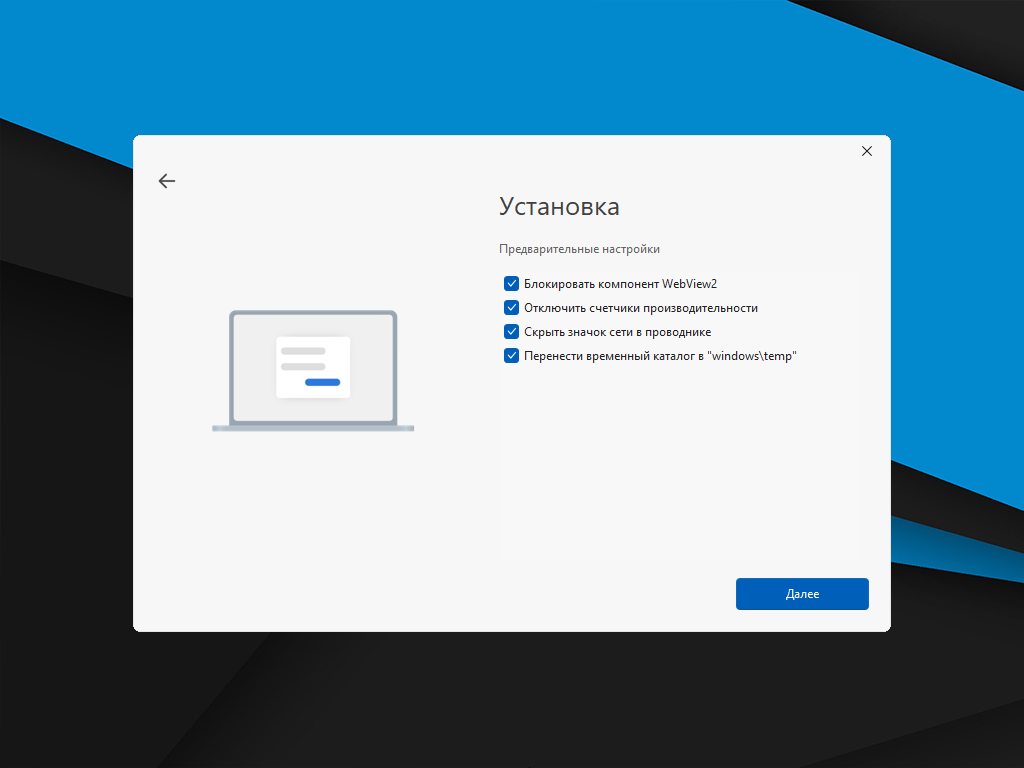 [Config] Name=Описание настройки Run=0 (0 — при инициализации, 1 — при создании пользователя) [Main] reg add "HKLM\..." /v "Параметр" /t reg_dword /d 1 /f